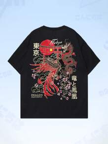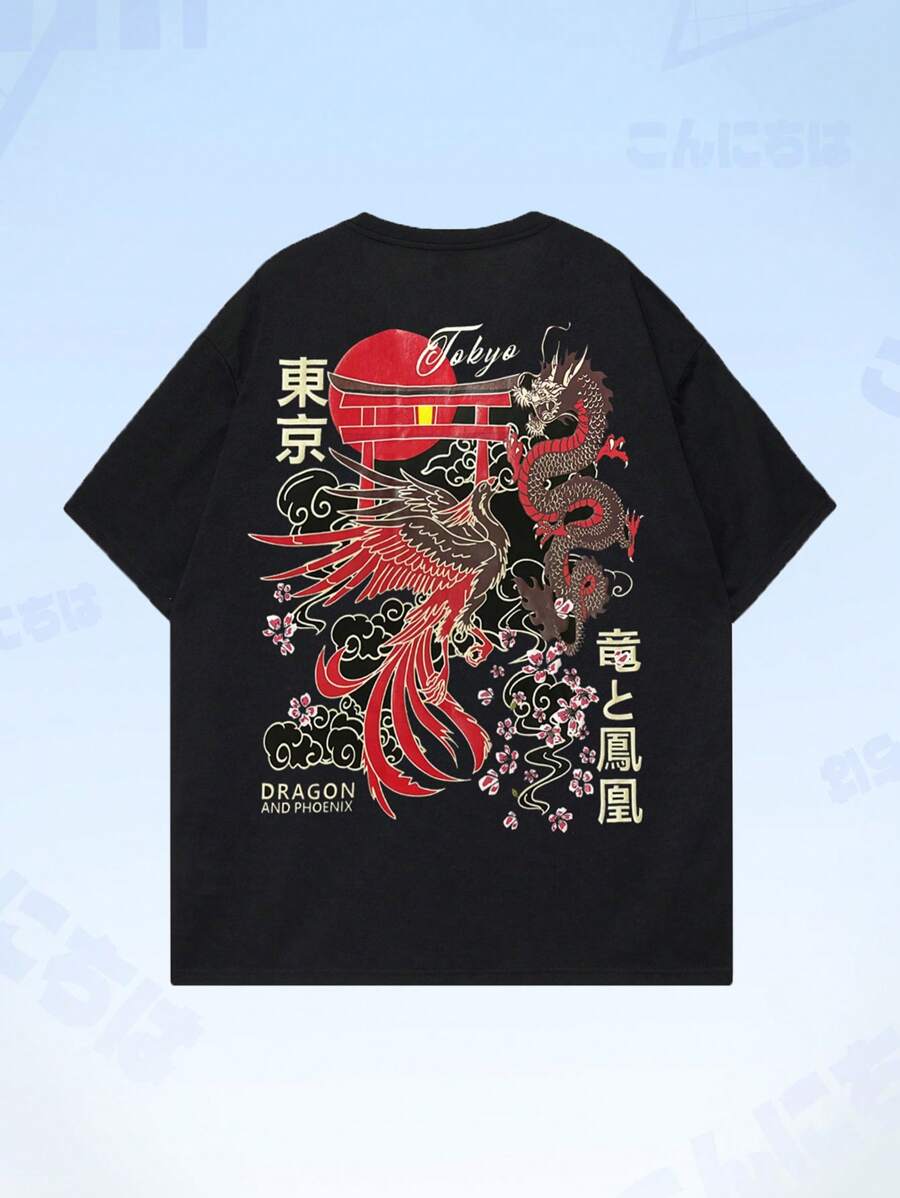Anime Ragazzi Maglietta cotone lettera giapponese & con grafica drago