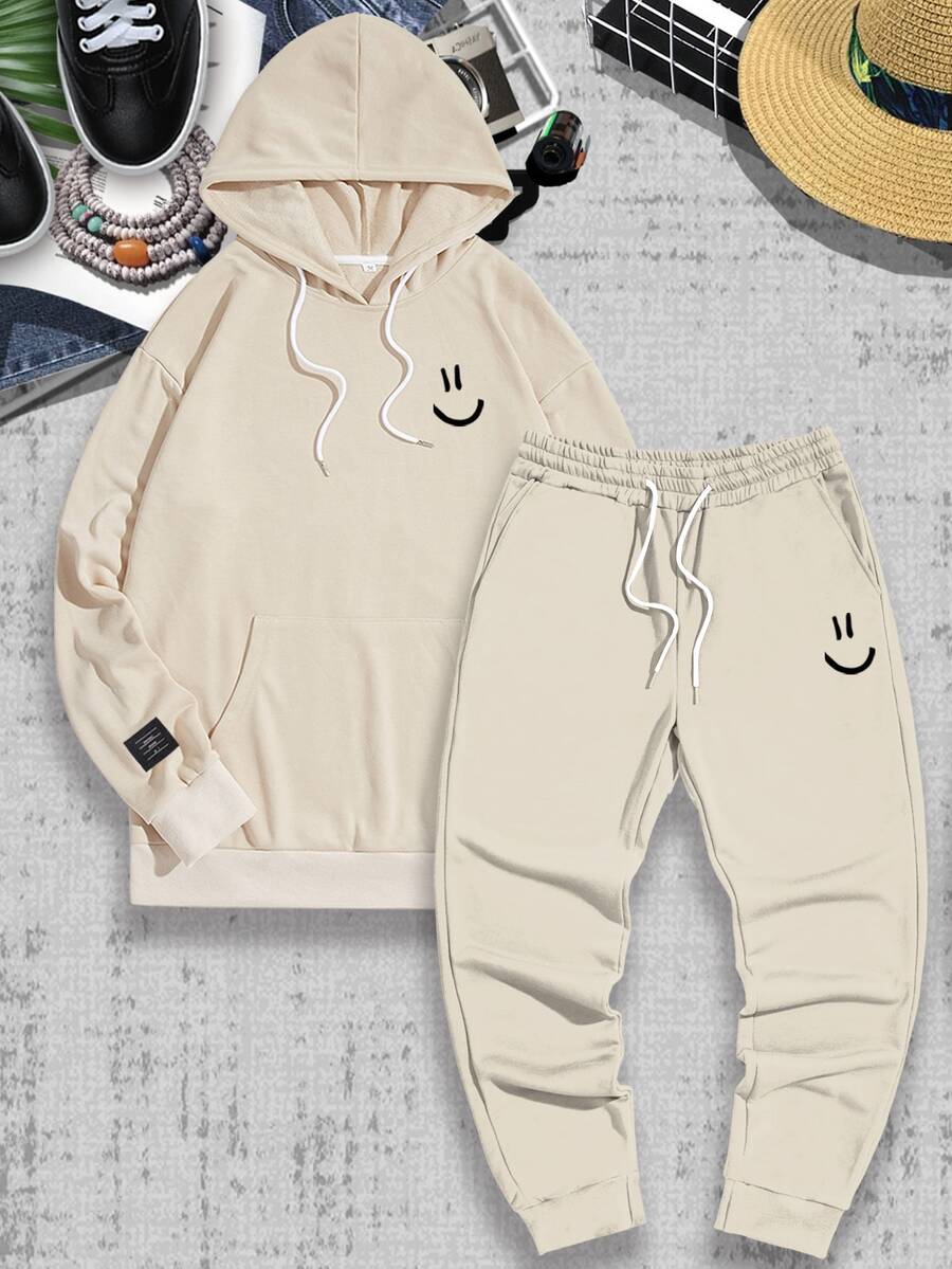 uomo Felpa con cappuccio con stampa espressione con coulisse & Pantaloni sportivi