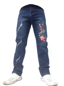 Jeans strappati con ricamo floreale