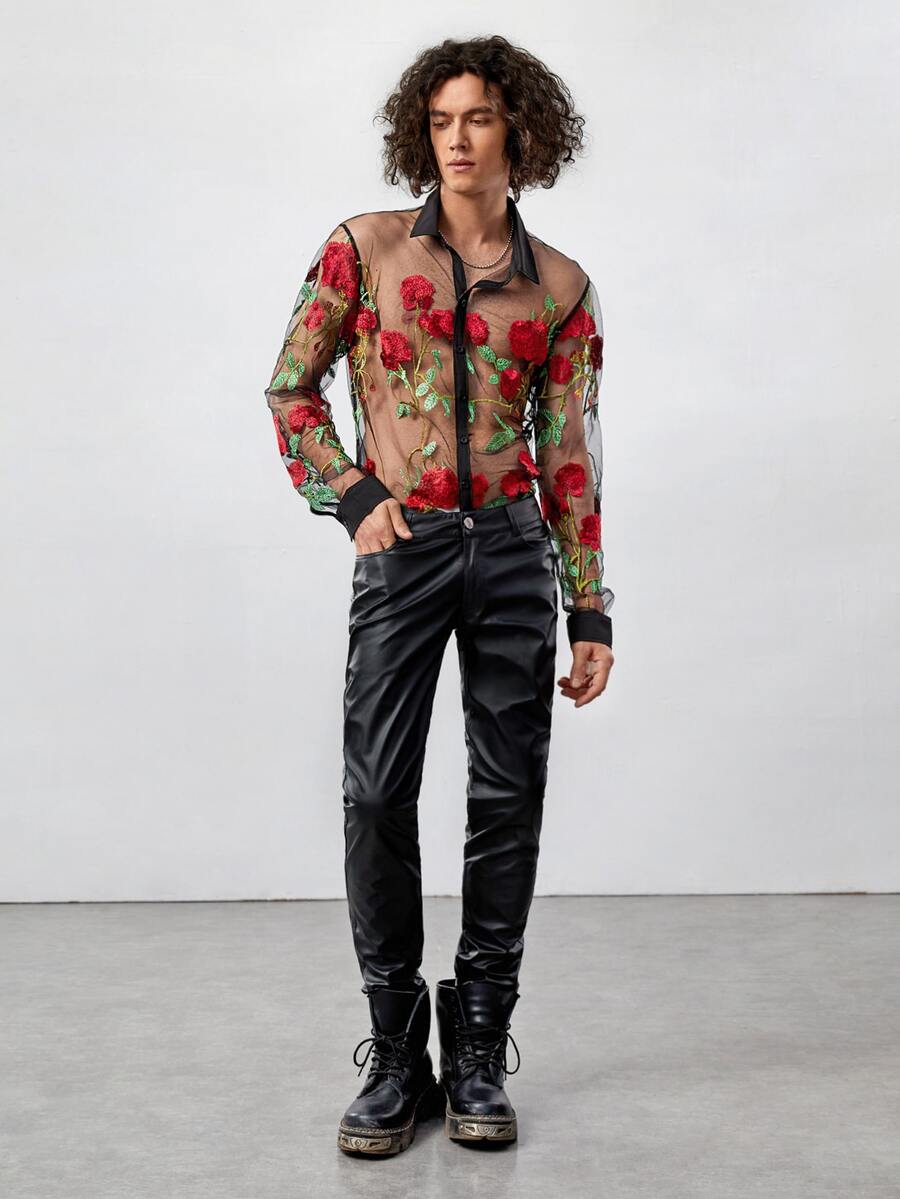 Ragazzi Camicia con ricamo floreale in maglia trasparente