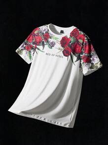 Uomo Maglietta con grafica lettera e floreale
