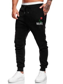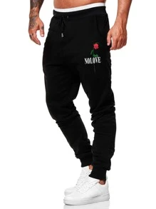 Pantaloni sportivi lettere con grafica floreale con coulisse