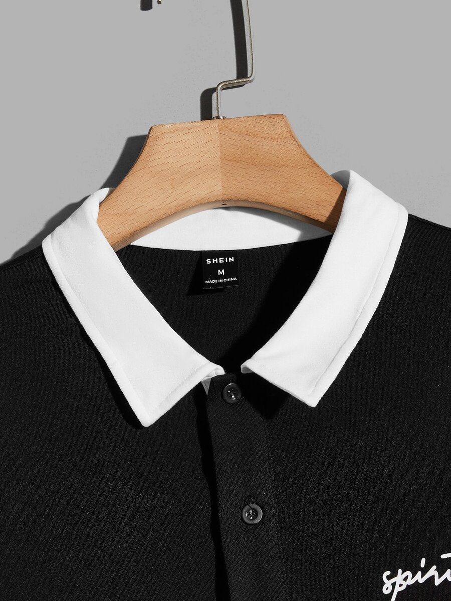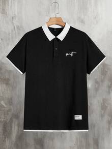 Uomo Camicia polo con grafica lettera dettaglio toppa
