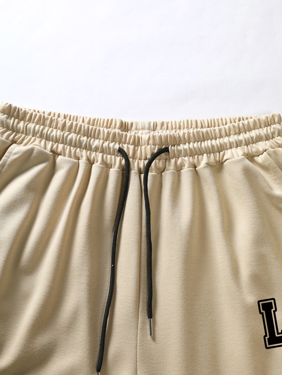 Uomo Shorts con grafica lettera finitura a righe con coulisse a vita