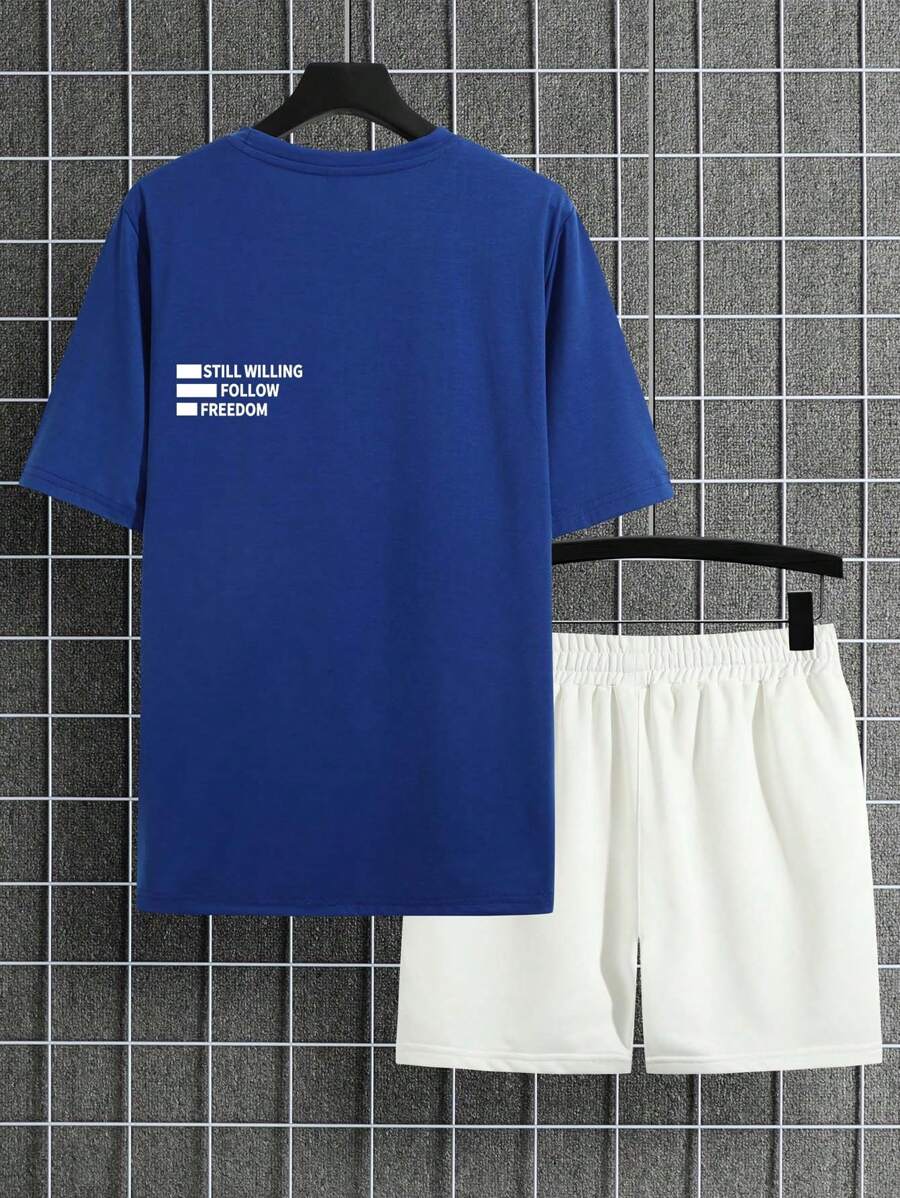 Set da uomo con t-shirt a maniche corte casual con grafica a lettera e pantaloncini con coulisse in vita, regalo per il fidanzato