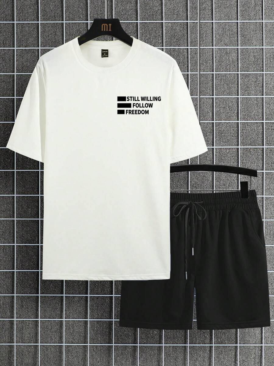 Uomo con grafica lettera Maglietta & con coulisse a vita Shorts
