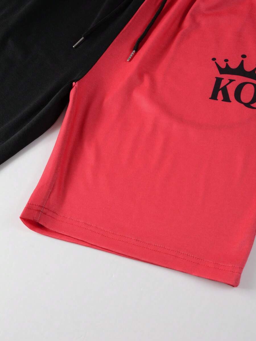 Uomo con grafica lettera bicolore Maglietta & con coulisse a vita Shorts