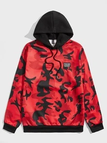 Ragazzi Felpa con cappuccio con toppa lettera mimetico con coulisse
