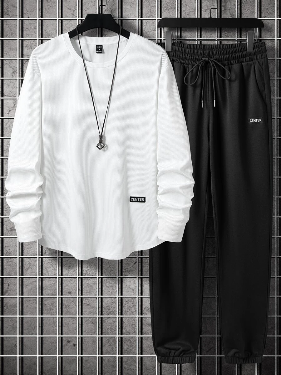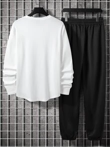 Uomo Maglietta toppa con lettera & Pantaloni sportivi con coulisse a vita