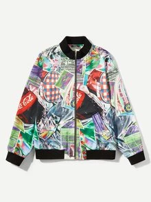 Giubbotto bomber uomo misto stampa zip