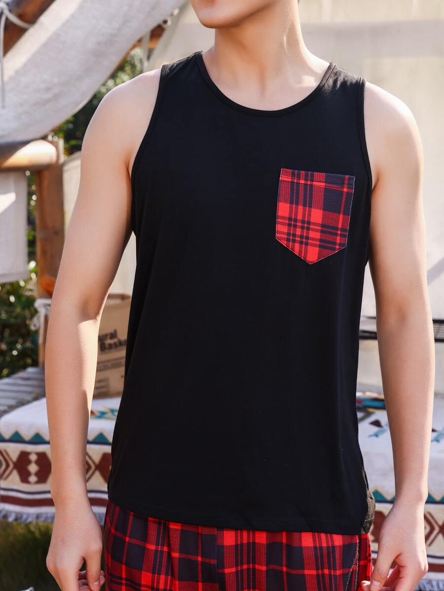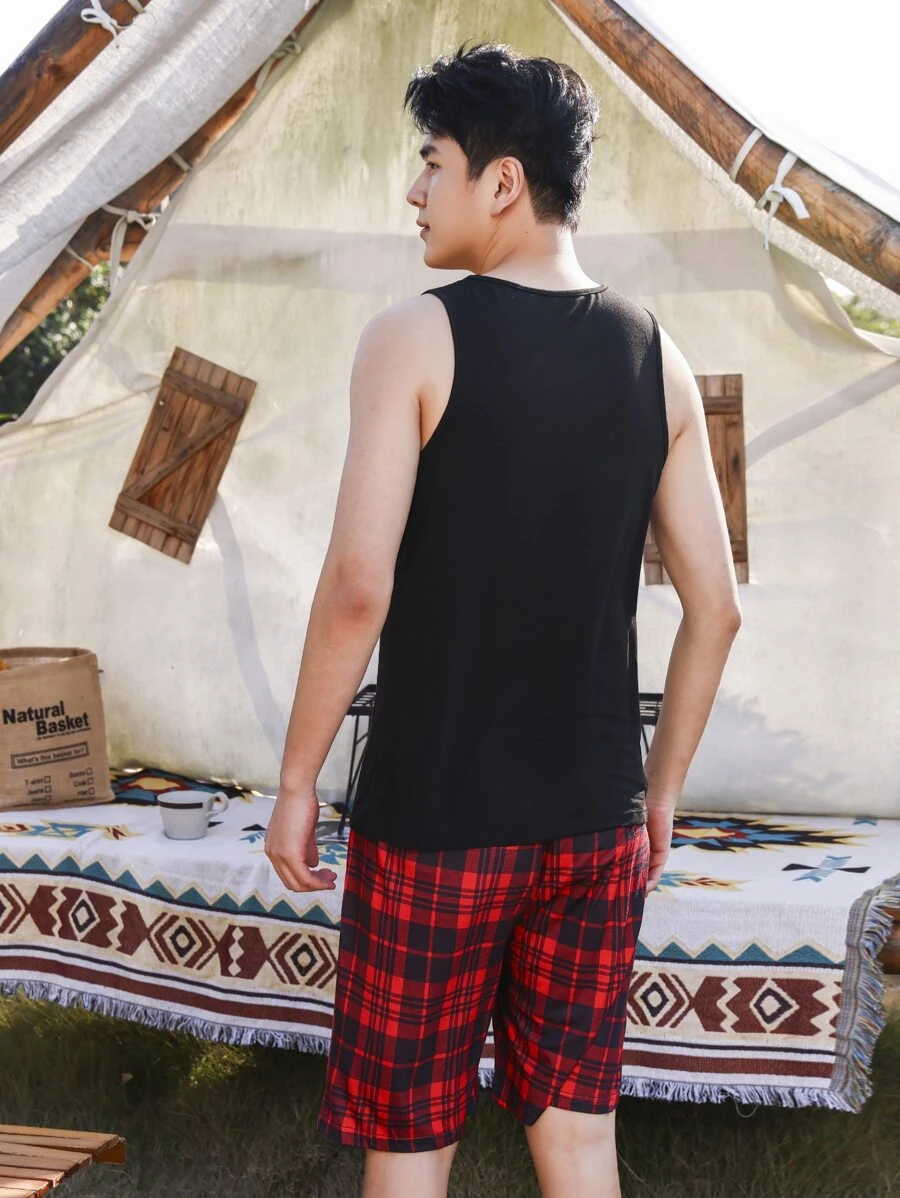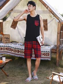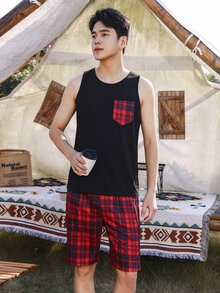 Uomo Set pigiama con stampa quadri