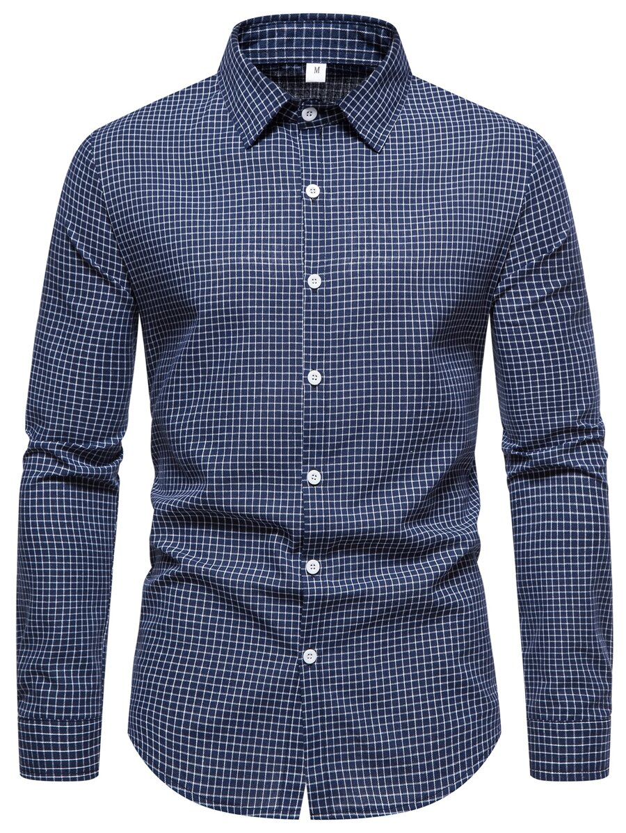 Uomo Camicia a quadri slim fit a maniche lunghe con colletto e bottoni per un abbigliamento casual e d'affari
