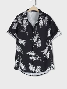 Camicie da uomo Bottone frontale Piante stampa dappertutto Bohemien