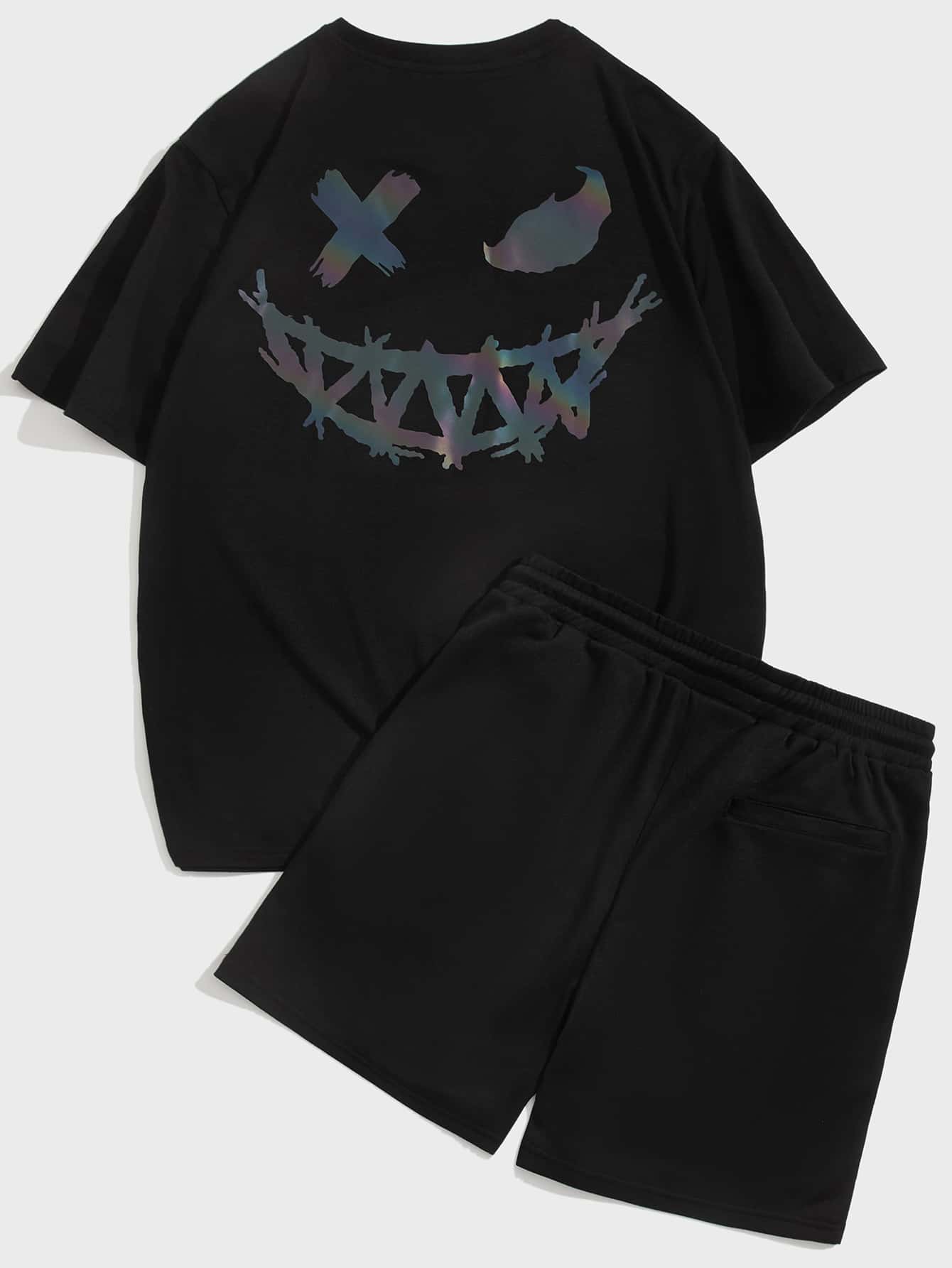 Maglietta riflettente con grafica fumetto & shorts coulisse