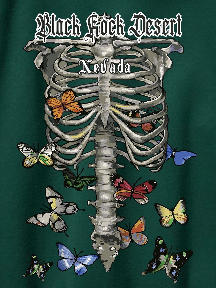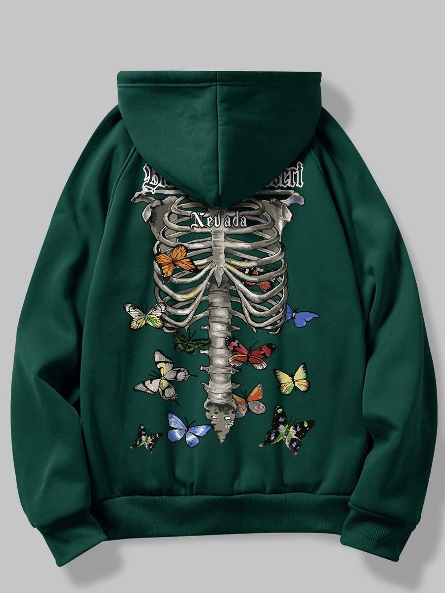 Ragazzi Felpa termica con cappuccio scheletro & con stampa farfalla con coulisse