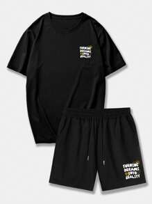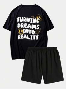 Ragazzi con grafica slogan Maglietta & con coulisse a vita Shorts