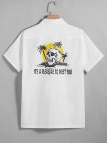 ragazzi Camicia slogan con grafica cranio con bottone frontale