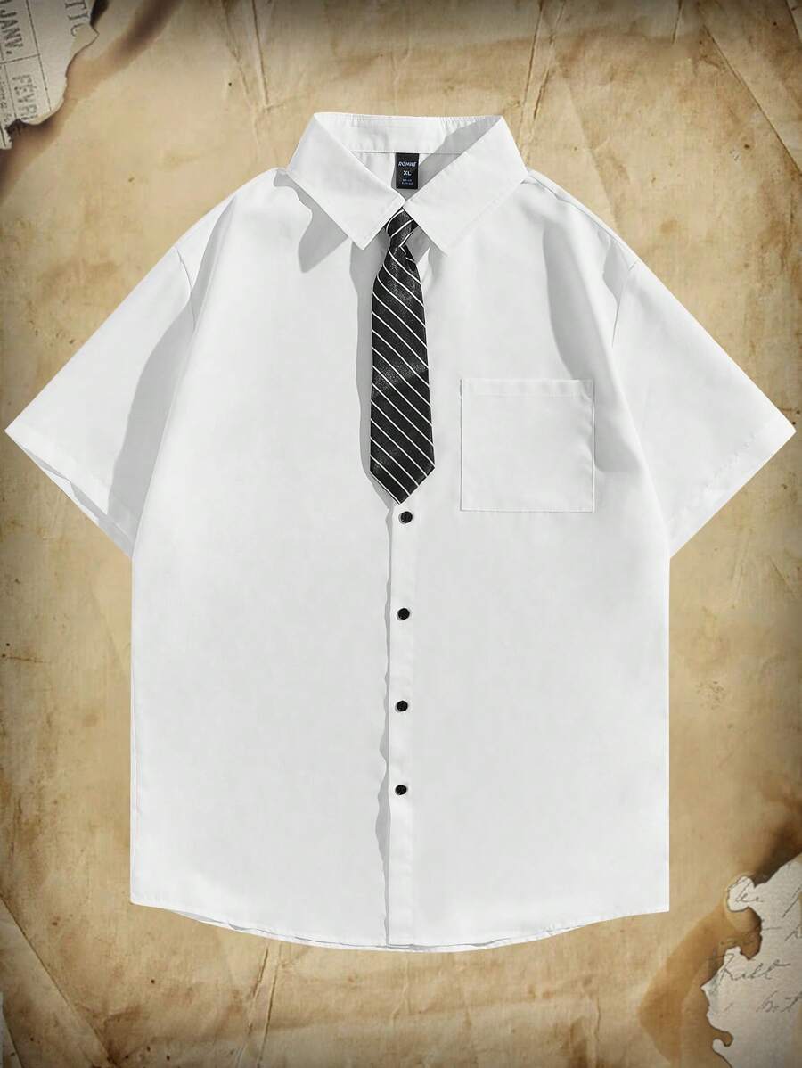 Academia Ragazzi Camicia monocolore con bottone frontale con cravatta