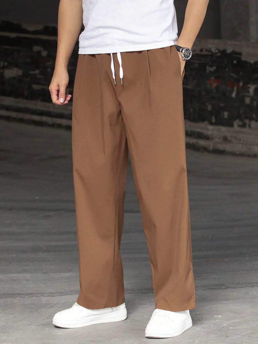 Pantaloni Da Uomo A Gamba Dritta Con Vita Con Coulisse, Vestibilità Ampia Di Colore Tinta Unita