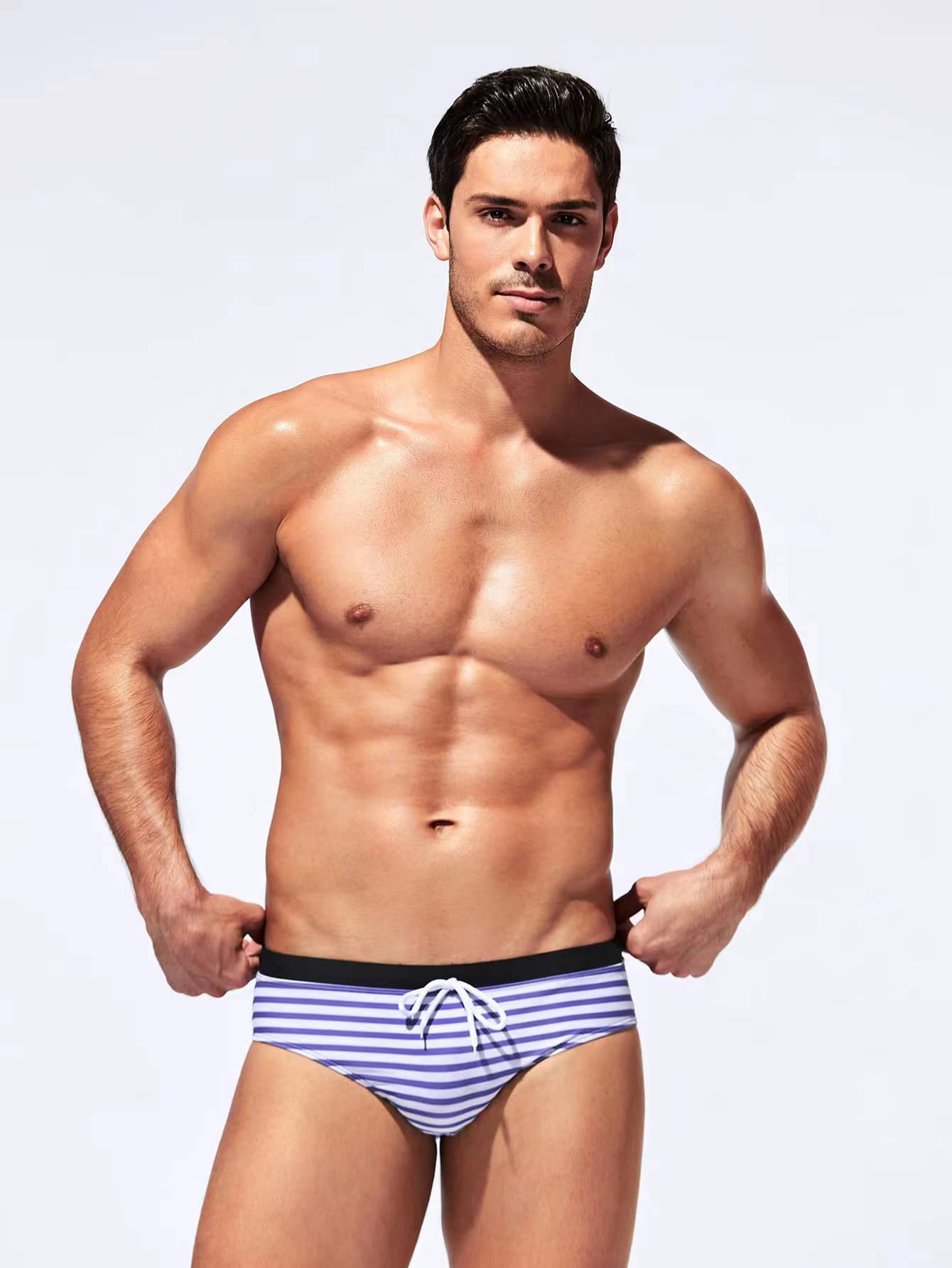 Brief da nuoto righe con nodo frontale da uomo