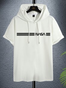 Uomo Maglietta con grafica righe e lettera con coulisse con cappuccio