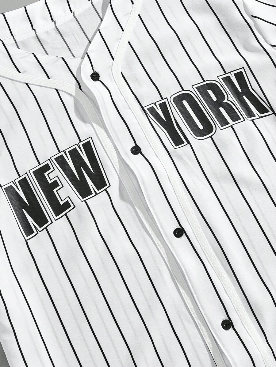 Maglietta da baseball uomo con strisce e applicazioni grafiche a tema lettere