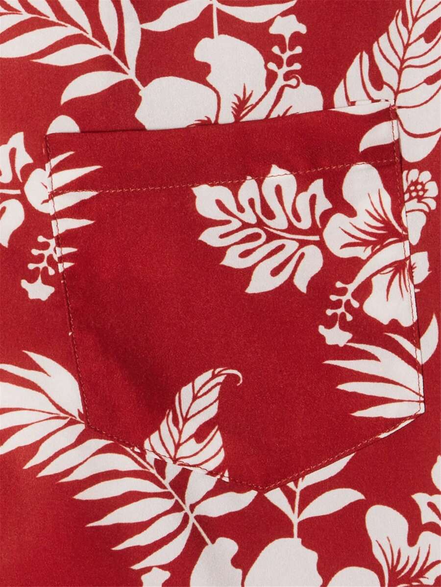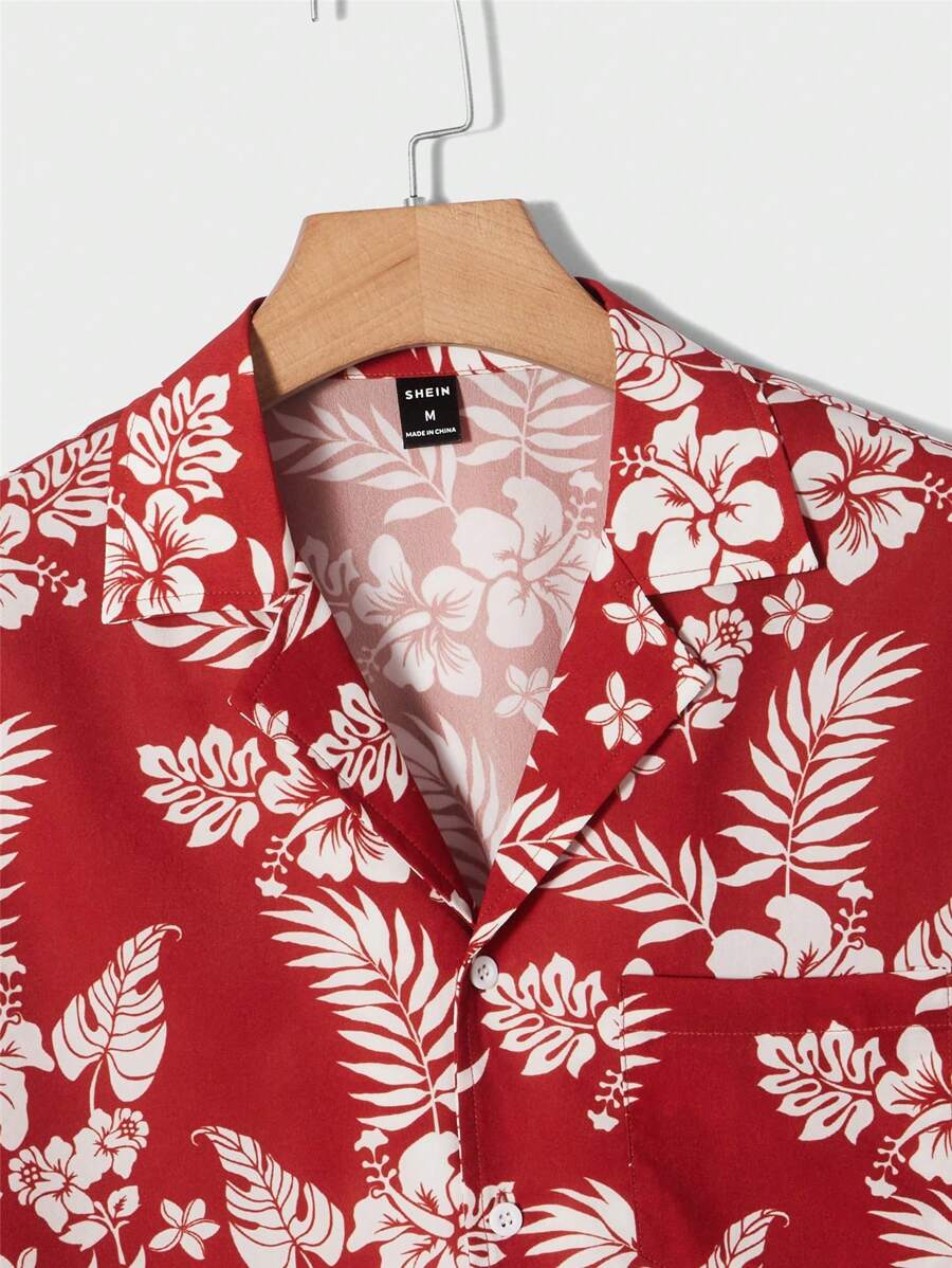 Camicia rossa a maniche corte con stampa tropicale per uomo, ideale per le vacanze estive
