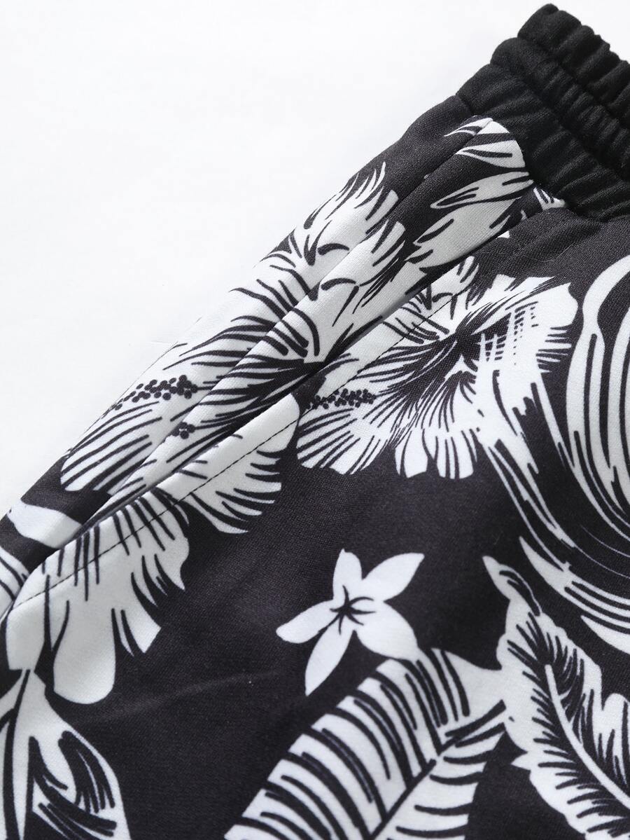 Uomo Shorts con stampa tropicale finitura a righe con coulisse a vita