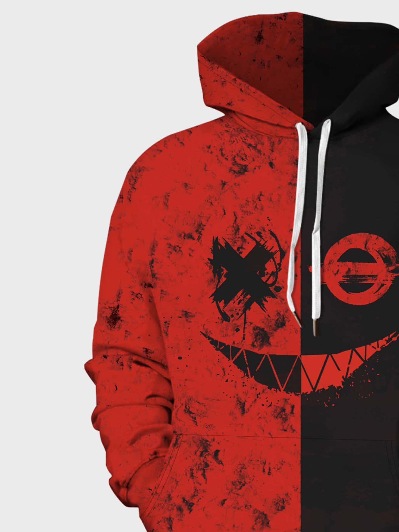 Uomo Felpa con cappuccio bicolore con grafica fumetto con coulisse