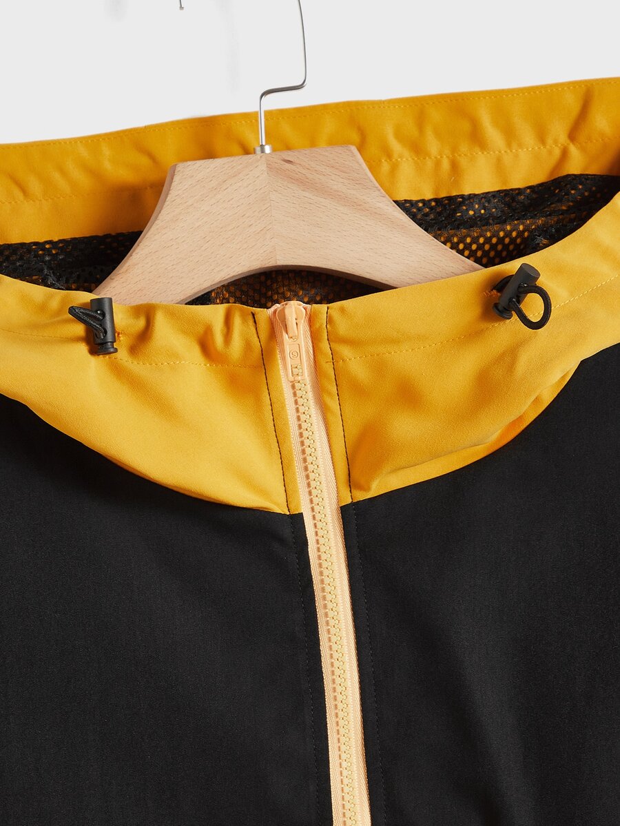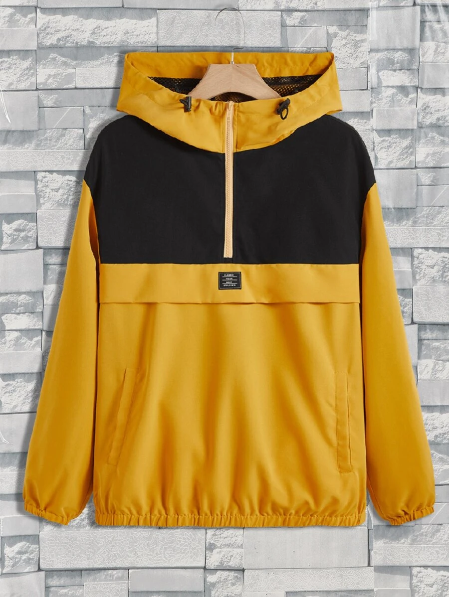 uomo Giacche bicolore con dettaglio di patta con mezza zip con tasca a marsupio con cappuccio