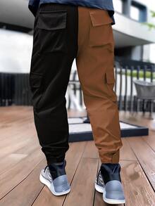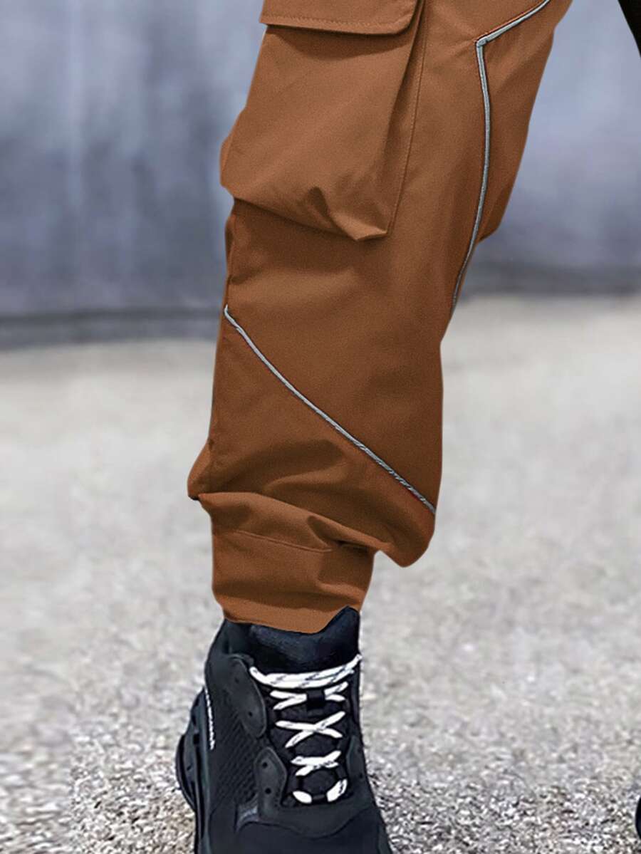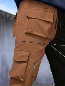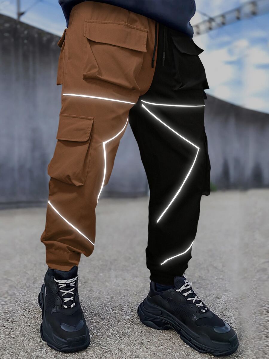 Uomo Pantaloni cargo bicolore catarifrangente nastro tasca con patta con coulisse a vita