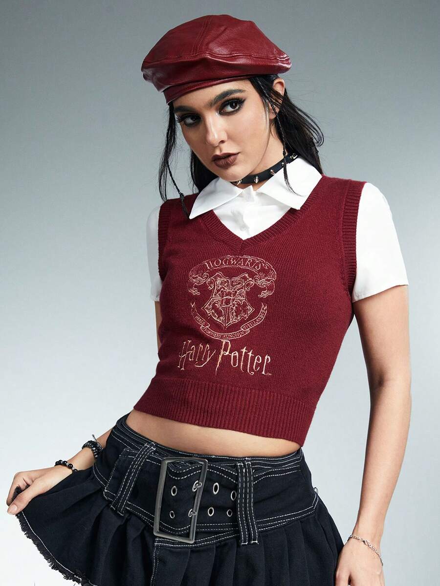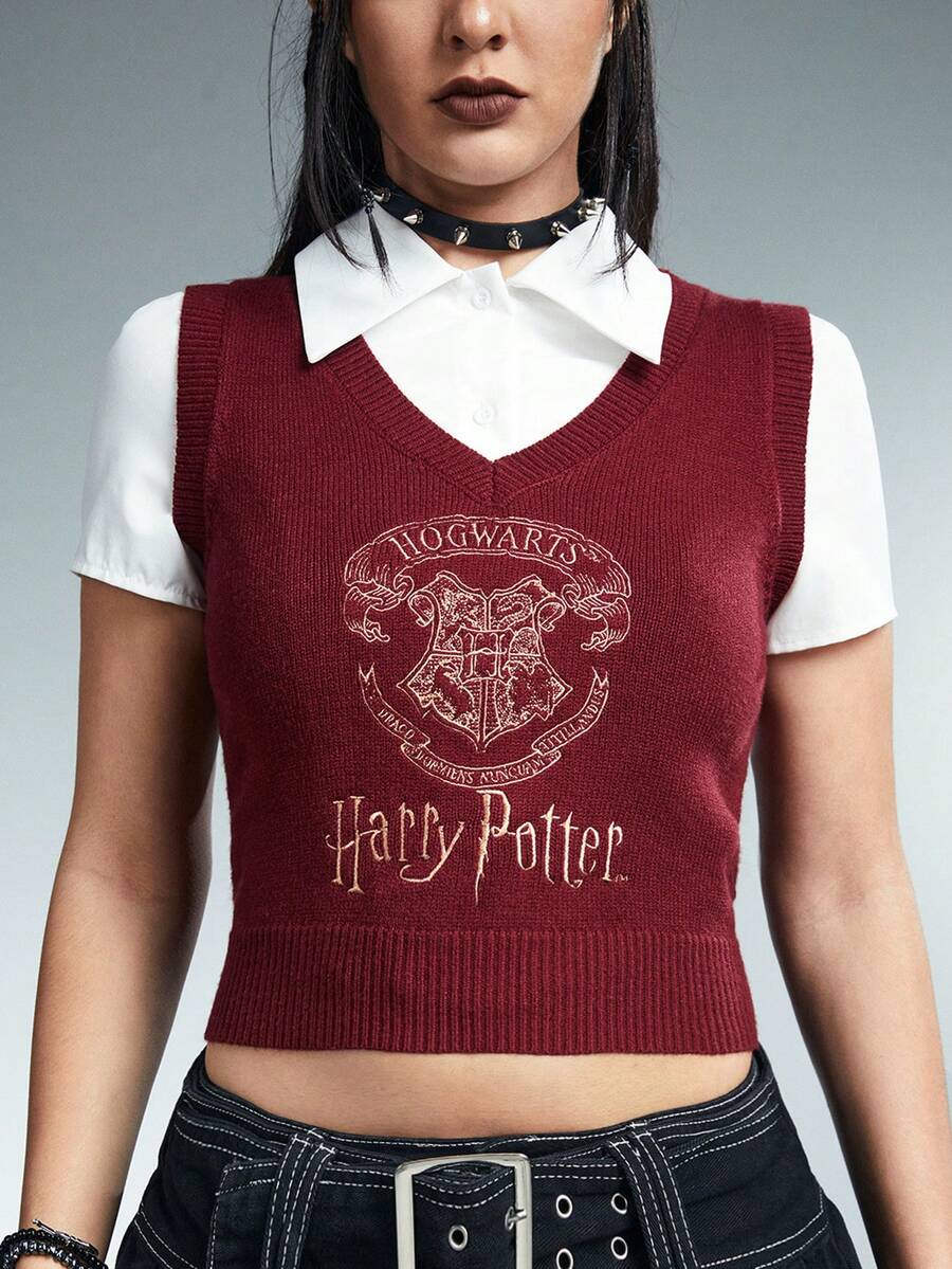 Harry Potter | ROMWE Gilet corto stile universitario con logo animale e motivo a lettere, per la scuola