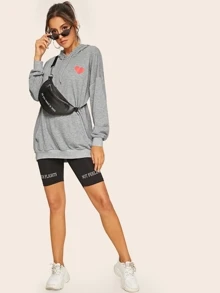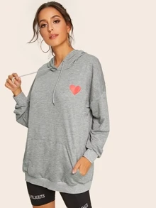 Felpa con cappuccio e coulisse e tasca di canguro e stampa cuore