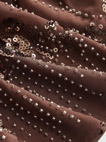Top da donna senza schienale con scollo drappeggiato, pesantemente decorato con ricami e perline, adatto per vacanze e momenti sexy