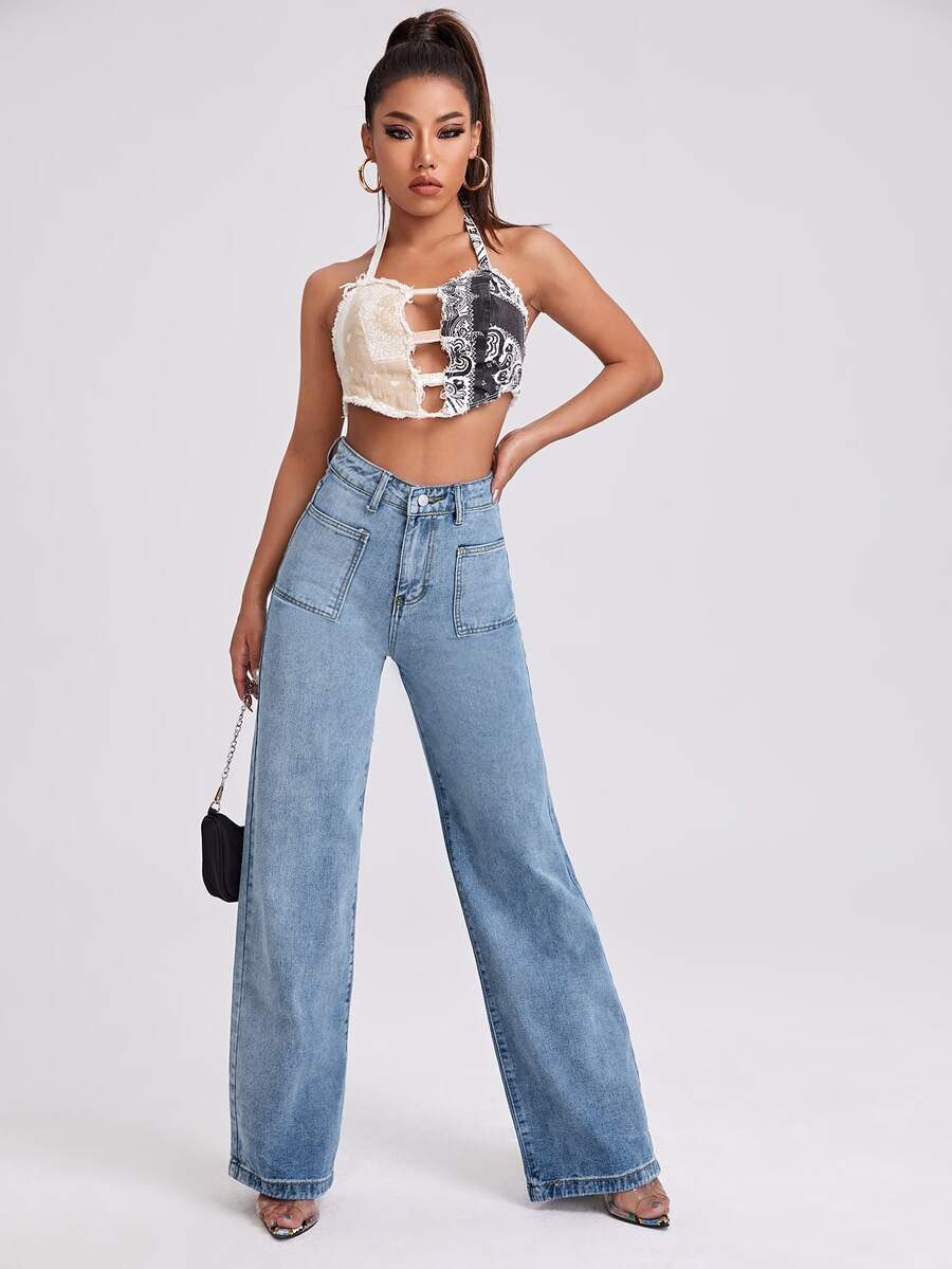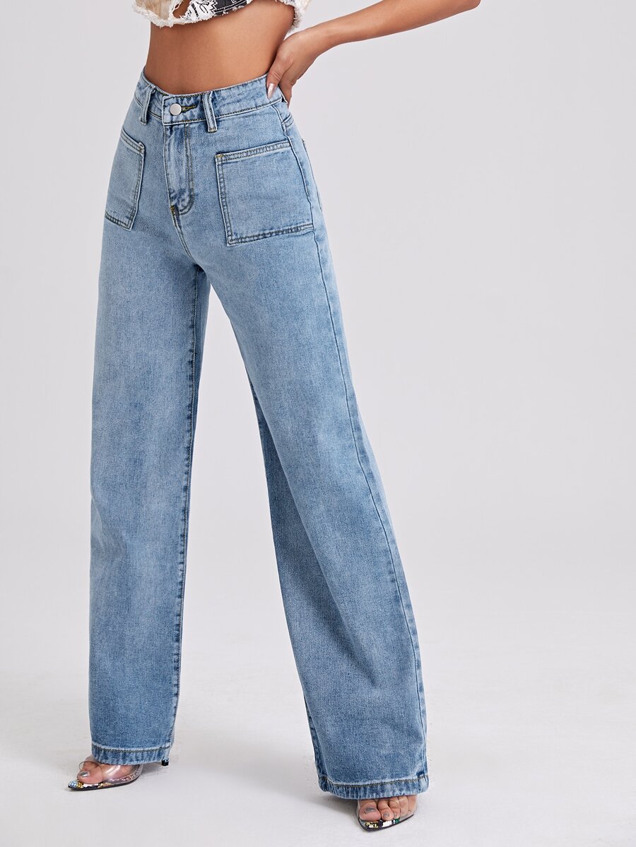 Jeans con gamba ampia e tasca e vita alta