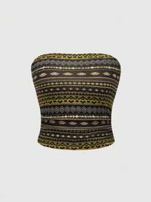 Hippie Top tubo strapless da donna con motivo bohémien retrò, top aderente per uno stile da vacanza