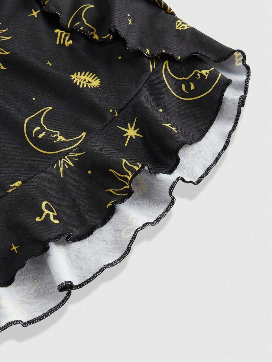 Hippie Set di pigiami casual con stampa di stelle giorno e notte e bordo a volant