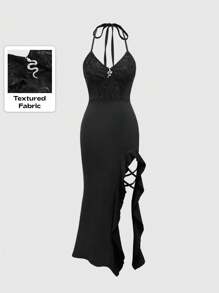 Hippie Abito con spacco sexy e motivo a serpente ricamato sulla scollatura a collo alto per le donne