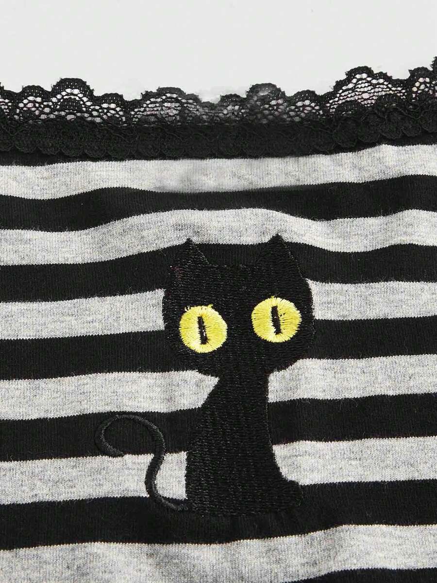 Hippie Canottiera A Righe Con Top Magico Di Gatto Nero Ricamato