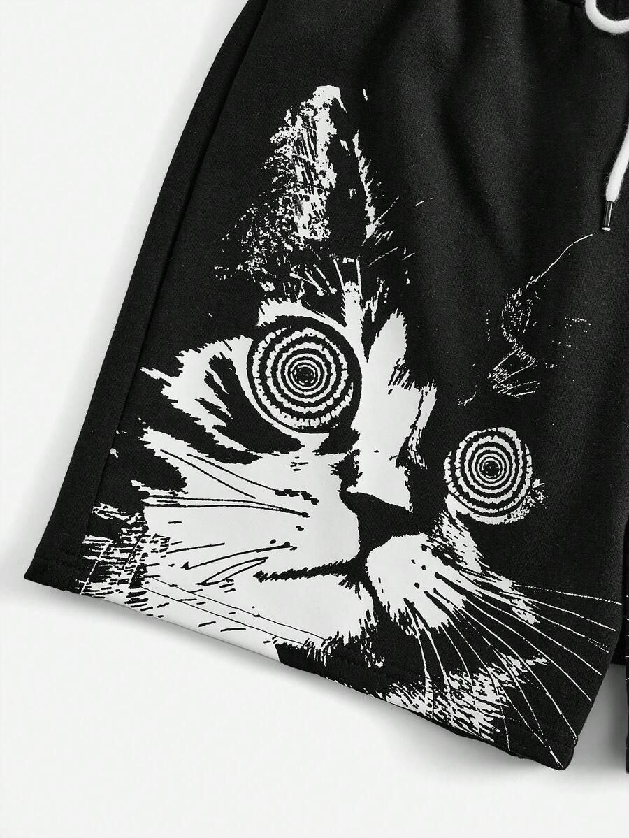 Hippie Shorts Con Coulisse Stampa Cartoon Per Uomo
