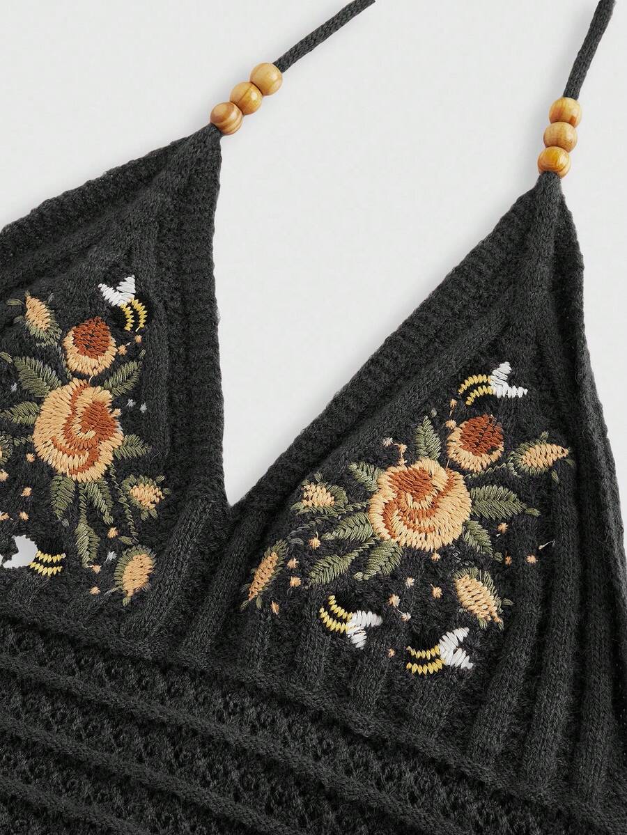 Hippie Maglia a collo alto con ricamo di api rosa, adatta per l'uso naturale e le vacanze pure, per le donne