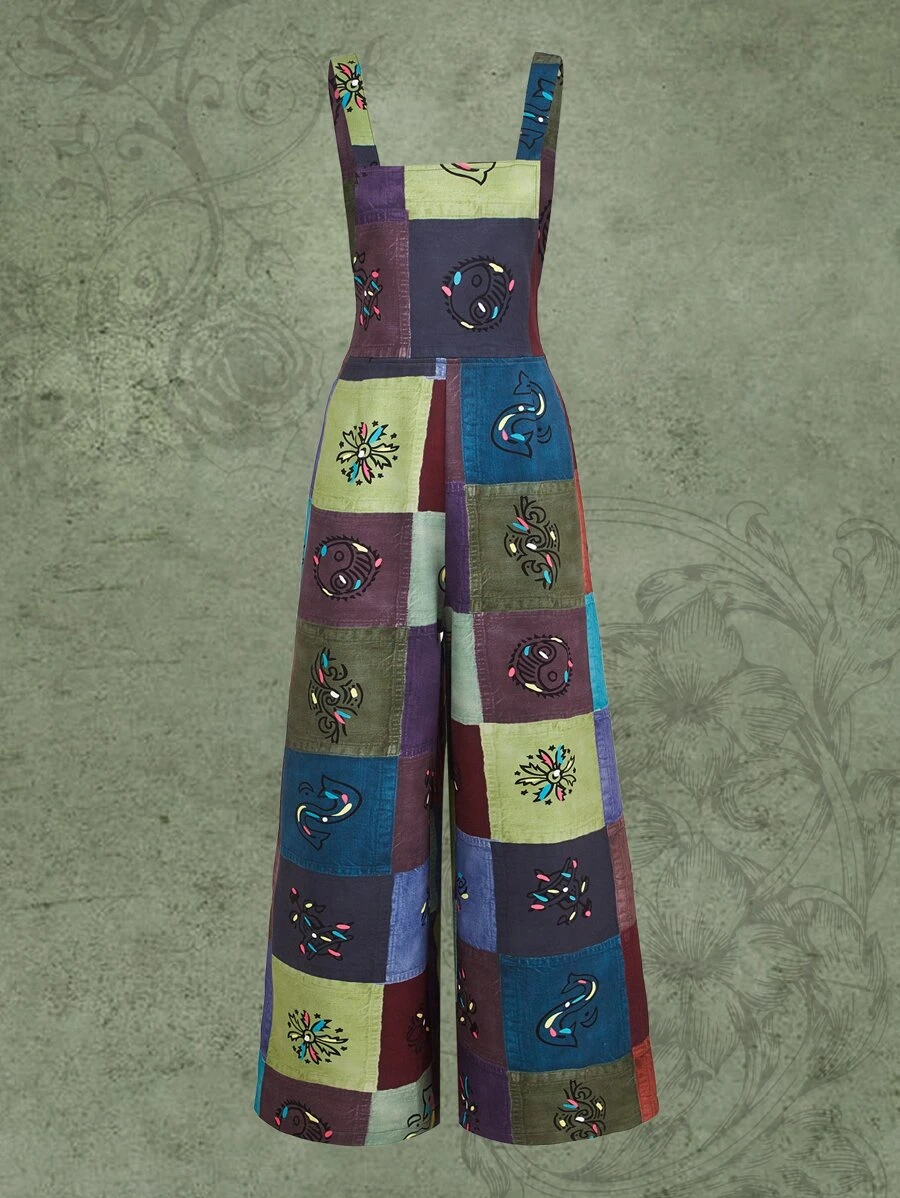 Hippie Jumpsuit salopette stampa patchwork gamba ampia