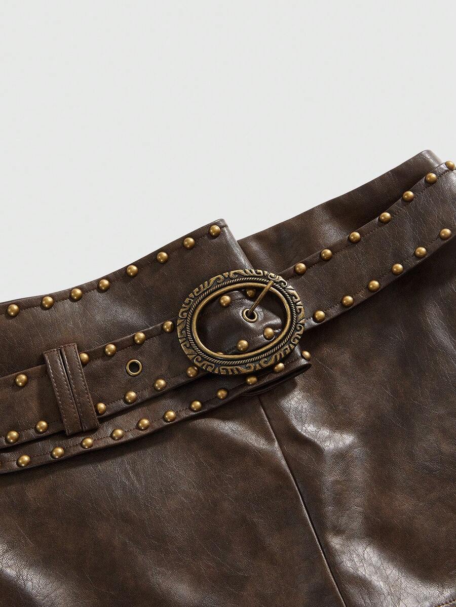 Hippie Minigonna sexy in pelle PU con borchie