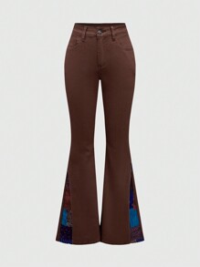 Jeans a zampa in denim con stampa patchwork stile hippie