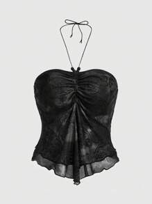 Hippie Top Estivo Con Collo A Pieghe Casual E Allacciatura Al Collo