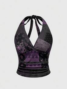 Hippie Maglietta corta casual e sexy da donna con collo alto e laccio sulla schiena