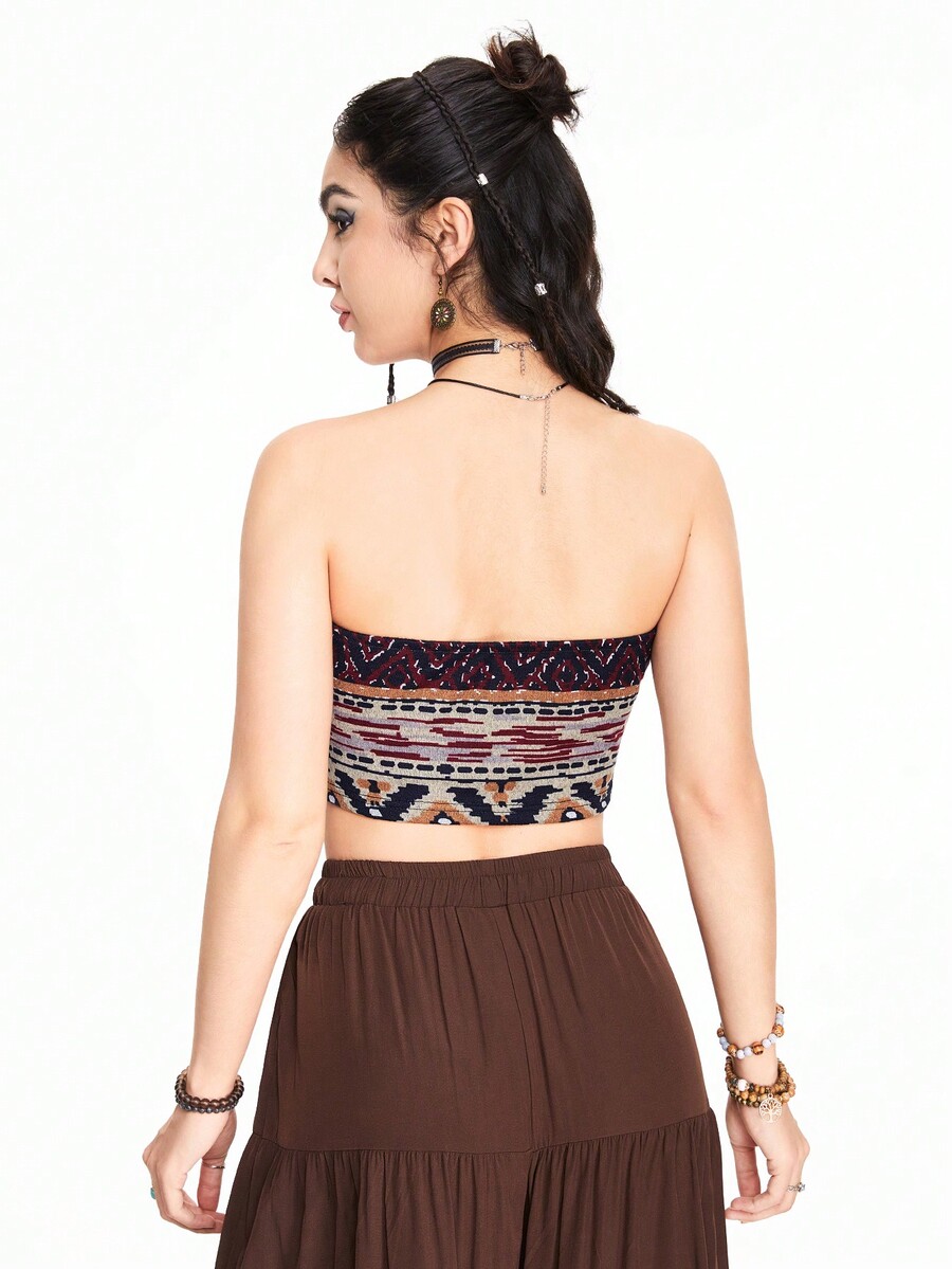 Hippie Top a fascia corto in stile boho con motivo geometrico da donna