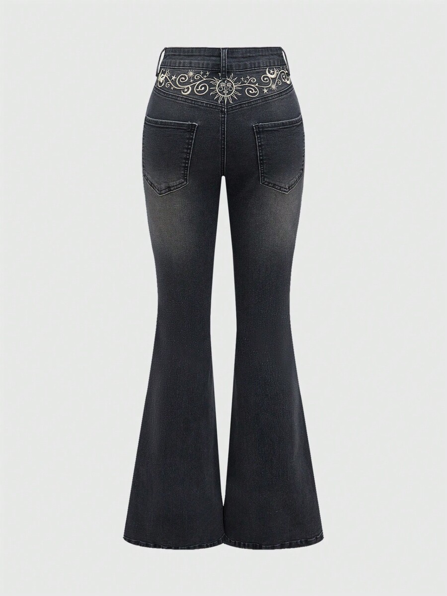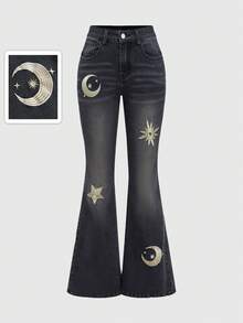Hippie Jeans casual a zampa con tasche ricamate a stella per donna