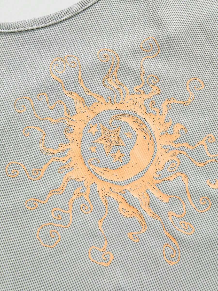 Hippie Canotta casual aderente a costine con stampa solare da donna