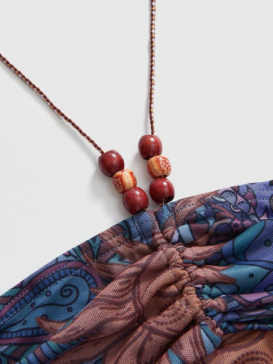 Hippie Top canotta donna con collo alla halter, stampa a girasole, con annodatura e bordo con volant, stile bohémien